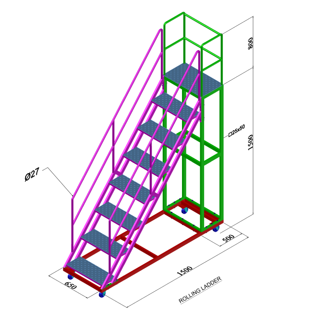 • Thang di động: Tích hợp bánh xe, linh hoạt di chuyển trong kho.
